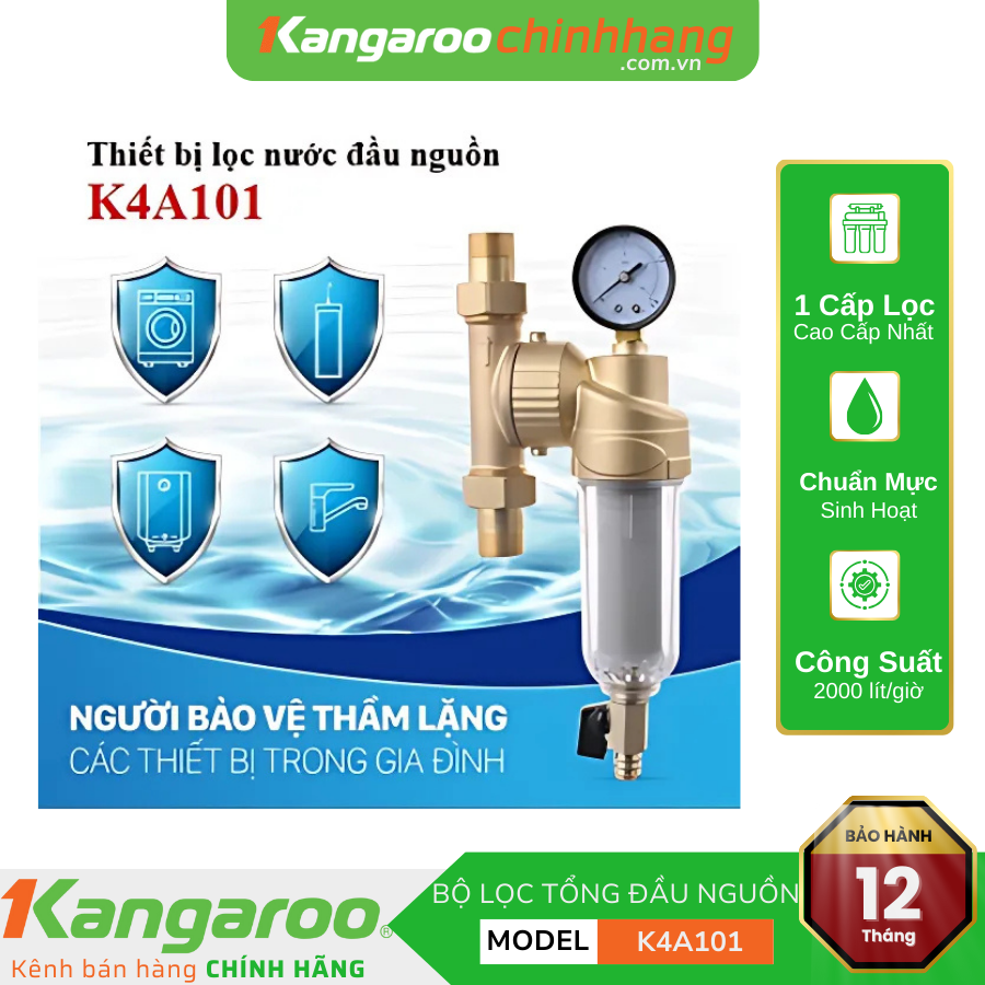 Muốn máy giặt, máy rửa bát, máy lọc nước, bình nóng lạnh, vòi rửa… tăng độ bền “20 năm vẫn chạy tốt”, bạn nên xử lý nước ở ngay van tổng cấp nước của ngôi nhà. Thiết bị lọc đầu nguồn K4A101 giúp nước sinh hoạt sạch hơn, giảm thiểu hư hỏng vật dụng gia đình.