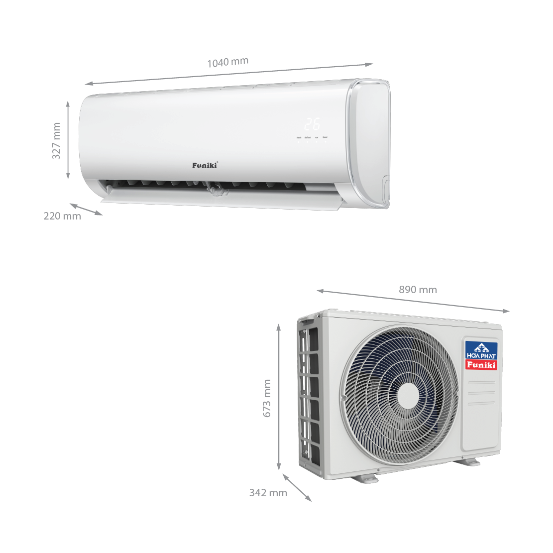 | Kích thước sản phẩm | Cụm trong nhà | mm | 1040 x 220 x 327 |
