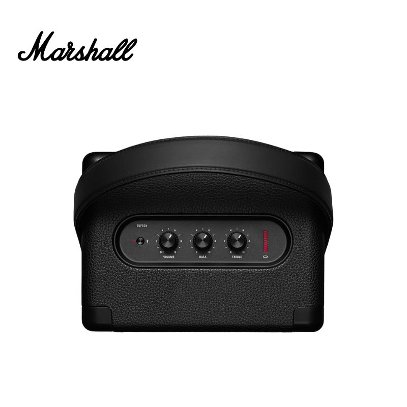 Mặt trên của Loa Marshall Tufton 2 chính hãng vẫn là bảng điều khiển quen thuộc với 3 núm điều chỉnh âm lượng, bass và treble. Bên cạnh đó là nút ghép nối bluetooth và đèn báo để theo dõi mức pin còn lại. Tại mặt sau của loa, bạn sẽ thấy một lưới tản nhiệt nhỏ góp phần tạo nên âm thanh đa chiều và một cổng cắm nguồn được được bảo vệ bằng lớp cao su để tránh các tác động từ bên ngoài.